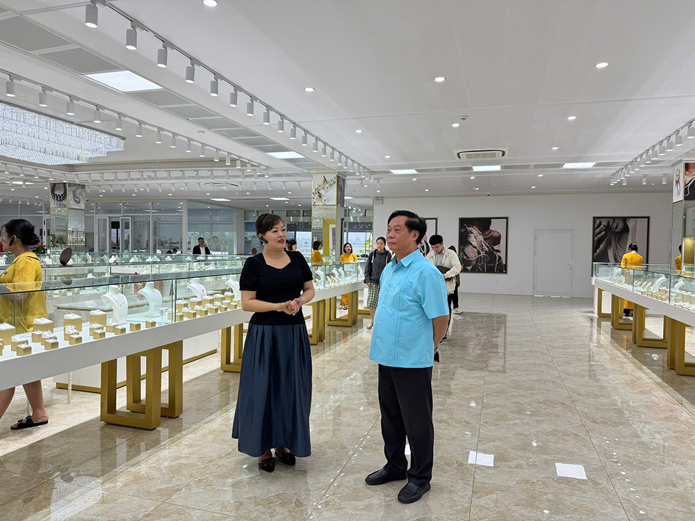 Phó Cục trưởng Phạm Văn Thuỷ khảo sát điều kiện kinh doanh tại điểm mua sắm Mỹ Ngọc - Công ty Cổ phần Ngọc Trai Hạ Long. Ảnh: Văn phòng - Cục DLQGVN